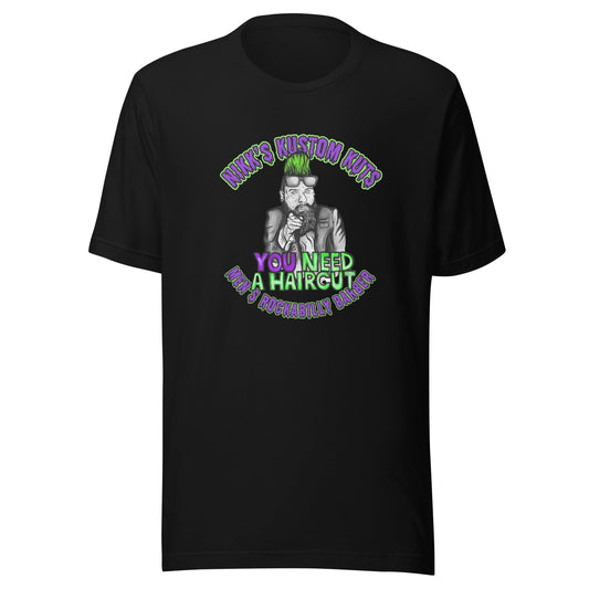 Nikk's Kustom Kuts "You Need A Haircut" Unisex Tee in Black