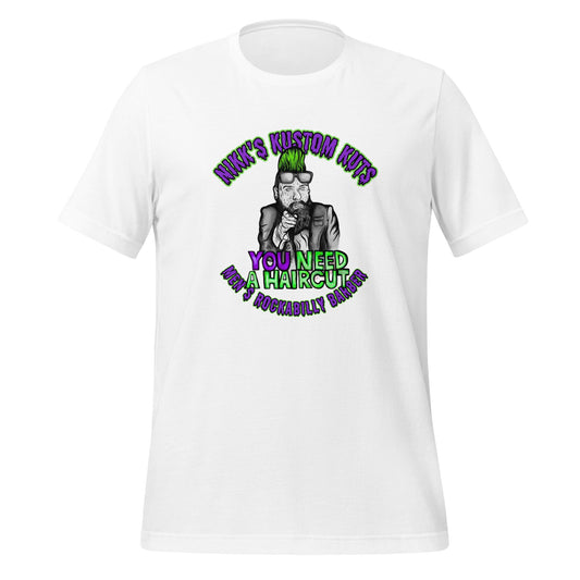 Nikk's Kustom Kuts "You Need A Haircut" Unisex Tee in White
