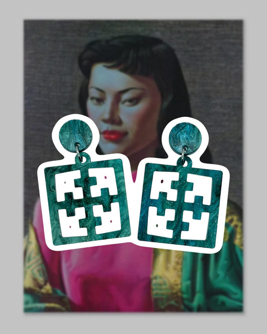 Tiki Chinese Jade Tile Style Breeze Cross Design Block Earrings -(TCJTSBCDBE)Vendor:Ella Bea GoodeRegular price $30.00Regular priceUnit price per-