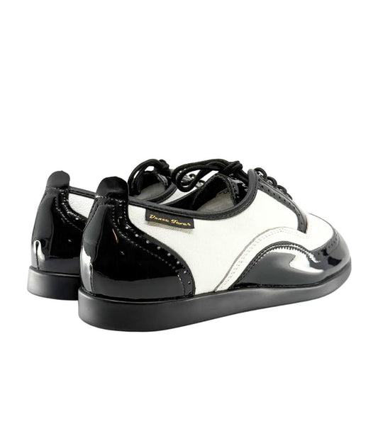 Ladies, Classic, Brogue, Wingtip, Black Patent And White Leather, with Dual Pivot Point, Spin Spots and Ultra flexible Smooth Sole, Dance Shoe. - (7821BW)