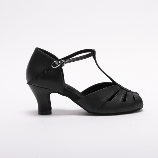 Ladies, Classic, Vintage Inspired, Peep Toe, 4 Strap, T-Bar Dance Shoe in Black Vegan Leather - (S230B1)