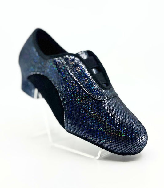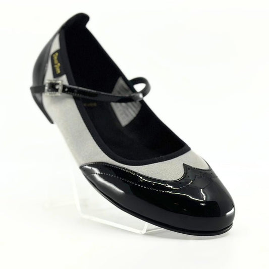 Ladies, Classic, Wing Tip, Mary Jane, Dance Shoe In Black Patent Leather and Silver Sparkle- (2083BS)