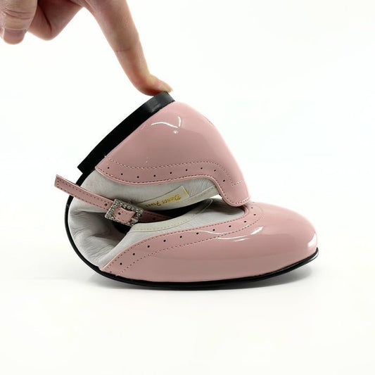 Ladies, Classic, Wing Tip, Mary Jane, Dance Shoe In Pink Patent and White - (2083PW)