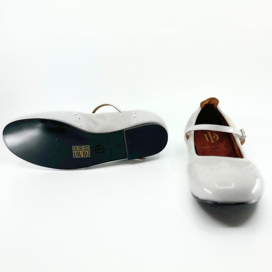Ladies, Classic, Wing Tip, Mary Jane Dance Shoe in White Patent and White Leather - (2083W)