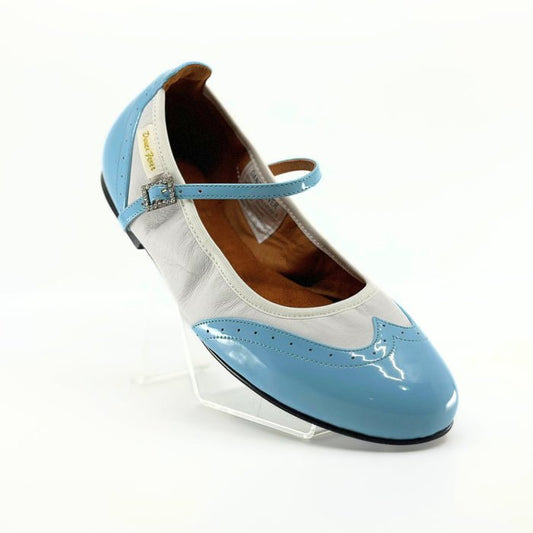 Ladies, Classic, Wing Tip, Mary Jane, Dance Shoe Pale Blue and White Leather - (2083BLU)