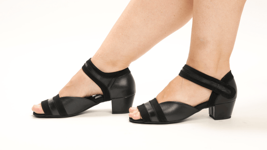 Ladies, Peep Toe, 3 Inch Flared Heel, Unique 3 Ankle Strap Dance Shoe - (S248)
