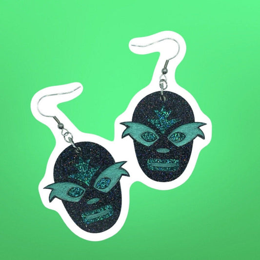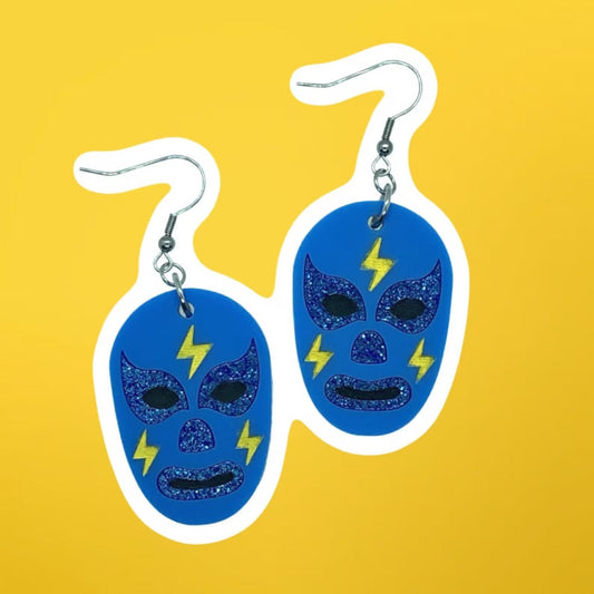 Lucha Libre Acrylic Earrings – Retro Blue Style (LLAERB)