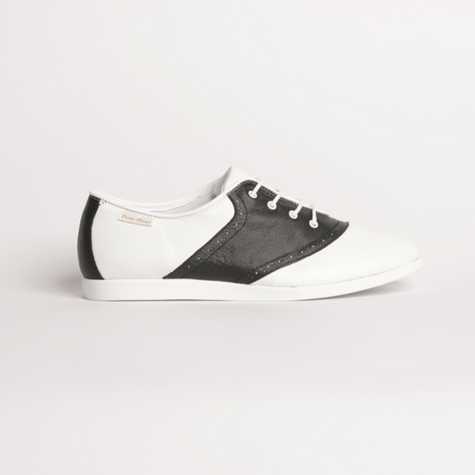 Men's 1950'S Vintage Inspired, Black And White Leather, "Saddle" Shoe With Dual Pivot Point, Spin Spots And Ultra Flexible Smooth Sole Dance Shoe - (7818-1)