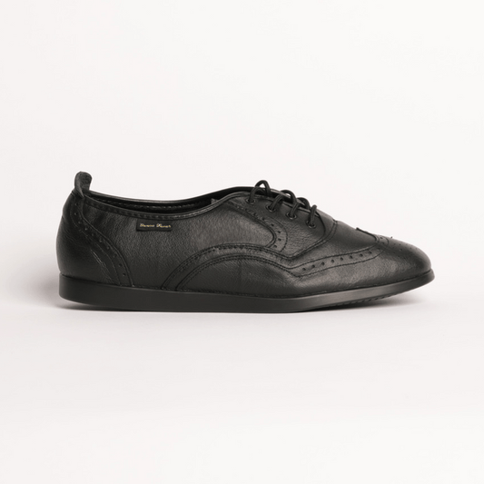Men's Classic, Brogue, WingTip Dance Shoe In Black Leather With Flat, Smooth, Rubber Sole Dance Shoe - (7817B)