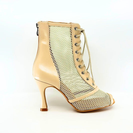 Premium Ladies Commercial Dance Boots In Beige Patent And Soft Microfibre Netting - (VITTORIA)