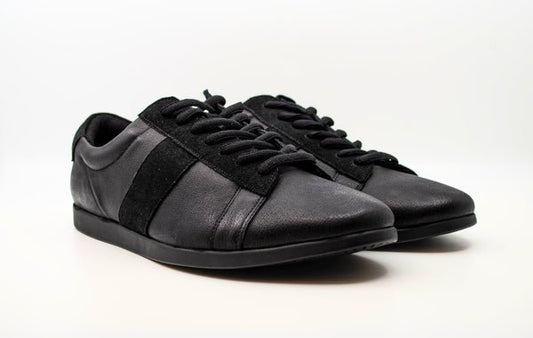 Men's Black Leather Dance Sneakers with Dual Pivot Point, Spin Spots & Flexible, Smooth Sole - (2305B)